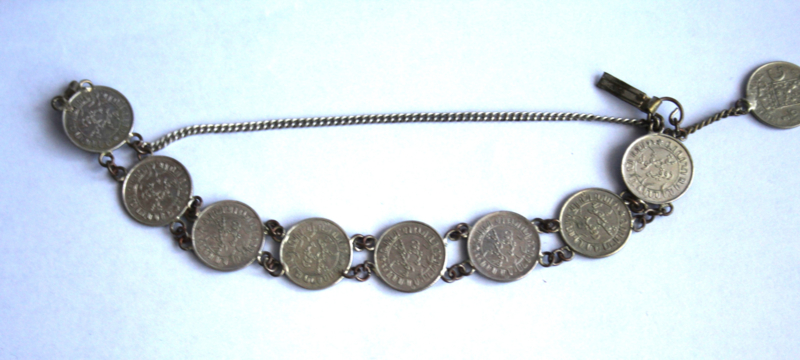 Armand - met zilveren 1/10 gulden, NL IndiëZilveren armband gemaakt van 1/10 guldens(zilver ca 0.900)