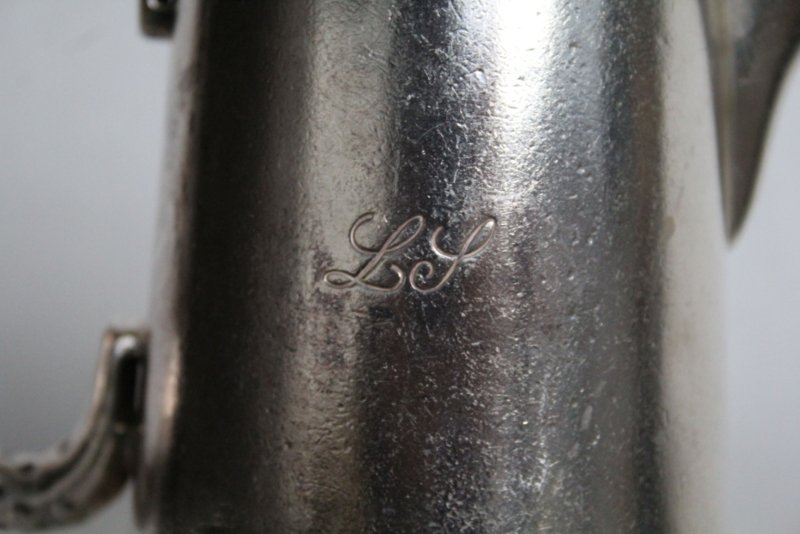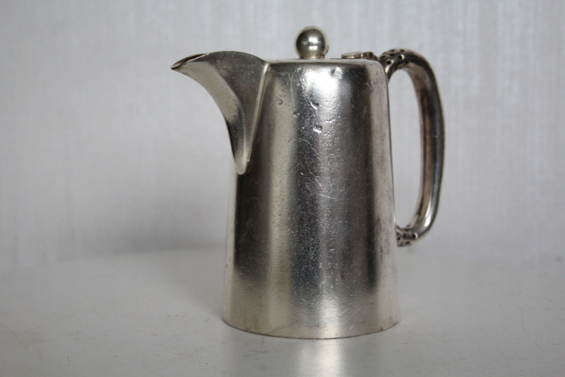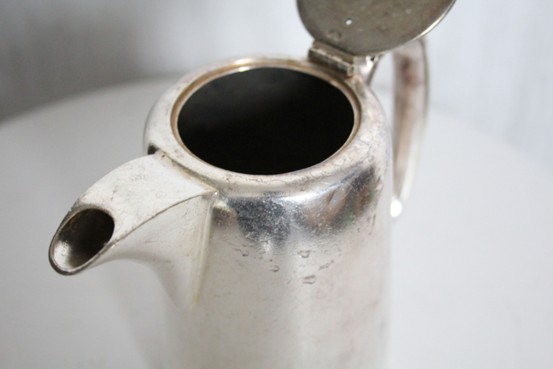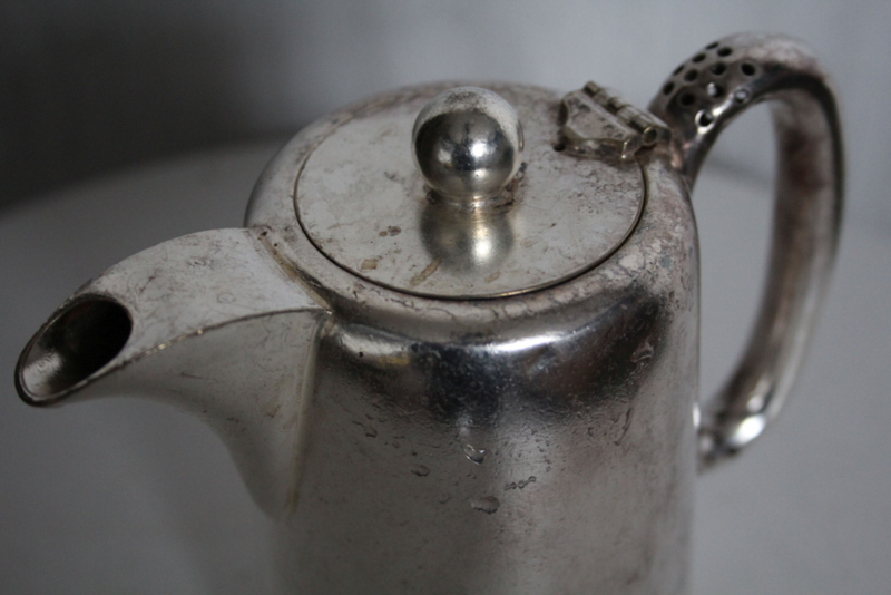Antiek verzilvderde theepot met gravure "LS"