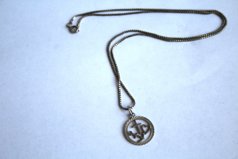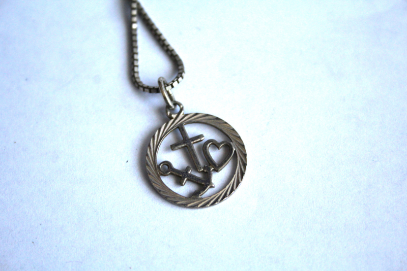 Zilver, ketting met hanger - geloof, hoop en liefde
