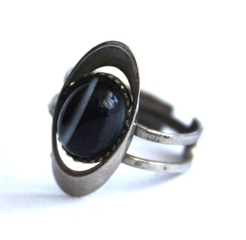 Vintage zilveren ring met Onyxsteen